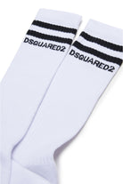 Ribbed cotton-nylon blend socks. They feature a Dsquared2 logo and contrasting colour stripes. Made in Italy.