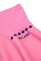 Mini skirt with logo and print on the back. Model with drawstring waist and pleated details.