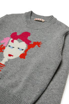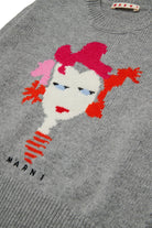 Long-sleeved crew-neck wool-blend knit pullover embellished with Marni Flower graphics made of inlays and accompanied by the Marni logo. A warm and comfortable garment, perfect for standing out in style.