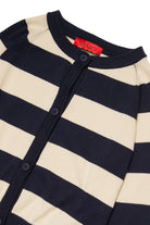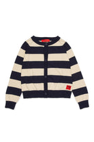 Striped cardigan in 100% cotton with logo applied at the hem. An iconic piece with front closure and contrasting details.