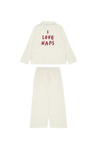 Pajamas with logo and lettering print, made from pure cotton. Set includes shirt and pants, both personalized with contrasting printed logos and details.