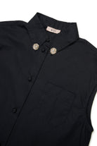 Sleeveless shirt with logo and jewel details on the collar, patch pocket, and embroidered patch at the hem