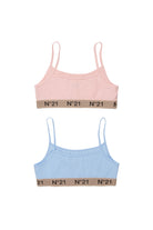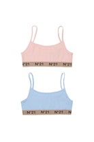 Set of sports bras with logo. Made of soft cotton with exposed elastic.