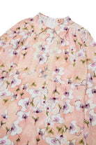 Satin mini dress with allover Monet graphics, a tribute to the French artist's famous water lilies. Gathered tulle on the chest creates volume embellishing the design of an extremely feminine garment.