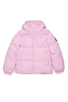 Padded jacket with hood and logo that combines thermal protection and clean design, made for facing cold days with practicality. The logo on the sleeve adds a distinctive detail.