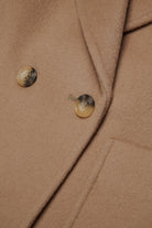 Double-breasted caban coat in shaved wool. An iconic garment with timeless appeal: essential lines, compact structure and fine details to face winter with style and elegance.