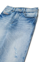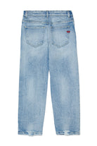 Regular fit jeans in light denim with a wrinkled effect and distressed details.