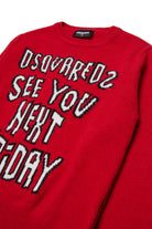 Wool-blend long-sleeved pullover with horror-inspired jacquard lettering. A garment with a strong character, perfect for those who like to stand out.