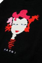 Long-sleeved crew-neck wool-blend knit pullover embellished with Marni Flower graphics made of inlays and accompanied by the Marni logo. A warm and comfortable garment, perfect for standing out in style.