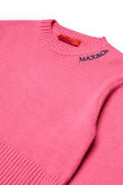 Long-sleeve boxy pullover in wool-blend knit. Contrasting color embroidered logo on the neck and side slit give the garment a modern and recognizable look. Perfect for casual everyday looks.