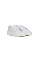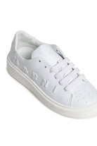 Low lace-up trainers with colour-tone embroidered institutional logo on the side. Perforated toe. Calf leather upper and inner lining. Thermoplastic rubber sole. Made in Italy.