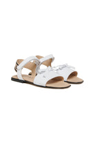 Sandals with logoed elastic N°21 on the back. Belt with strap. Bow at the top. Calf leather upper and inner lining. Leather-rubber sole. Made in Italy.