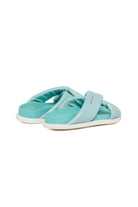 Crossed fussbett slippers with puffy design. Institutional logo in contrasting colour on top. Thermoplastic rubber sole. Made in Italy.