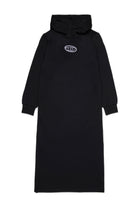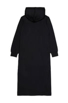 Long hooded sweatshirt maxi dress with high neck. Perfect for a casual yet sophisticated look. Side slits give freedom of movement, while Oval D embroidery adds a distinctive touch.