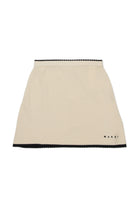 Short skirt with logo and knit construction, finished with contrasting trim and embroidered details.