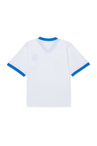 T-shirt with printed logo made of 100% cotton. Features a V-neck design and contrasting trims on the collar and sleeves.