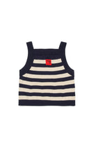 Sleeveless knit top in 100% cotton with striped pattern and logo label on the back.