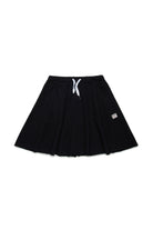 Short fleece circle skirt with a raw-cut hem at the bottom, perfect for a comfortable yet polished look. Side pockets and drawstring waist add practicality and a sporty touch to the garment.