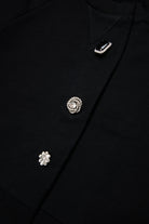 Long-sleeved, jewel-buttoned sweatshirt style with a refined taste. A reinterpretation of the classic crew-neck sweatshirt, with raw-cut hems that add a modern, edgy touch to a unique garment.