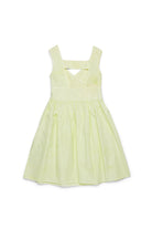 Sleeveless 100% cotton poplin midi dress. Hand-dyed watercolour effect. Tone-on-tone embroidered monogram crest on the back band.
