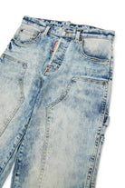 Loose Fit five-pockets jeans. Made of light-coloured denim, distinguished by a bleached marbled effect with gradients and whiskers in contrasting colours. Design characterised by visible ergonomic stitching. Dsquared2 label applied to the flap (flag logo).