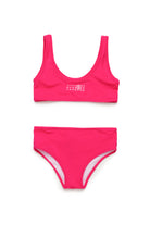 Lycra bikini swimsuit with shoulder straps. Numeric logo in contrasting color on front and back. Lined inside.