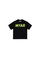 Cotton T-shirt made with deadstock fabric, with MYAR logo printed on the chest.