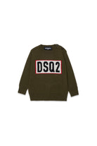 Long-sleeved crew-neck pullover in soft merino wool with logo jacquard DSQ2. A warm and comfortable garment designed to face winter in style.