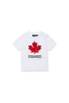 Soft cotton jersey short-sleeved T-shirt with logo logo Sport where the Canadian Maple Leaf, an iconic symbol of the Dsquared2 universe, is reinterpreted with a flocked finish with a ruined effect. A garment that combines style and practicality.