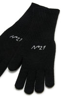Wool-blend knit gloves with contrasting embroidered N°21 logo on the back. Perfect for tackling the colder months, they combine practicality and style thanks to their simple design with rib construction on the cuffs.
