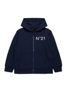 Oversize full zip hooded sweatshirt, a comfortable and versatile garment. The N°21 Institutional logo, applied heart side in contrasting color, adds a touch of style. Perfect for a casual and relaxed look.