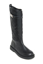 Ankle boots with a strap on top. A model that combines elegance and functionality, made of a mix of leather and technical fabric for the perfect balance of style and comfort.