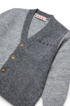 Long-sleeved wool-blend knit cardigan, warm and soft. Featuring a distinctive colorblock construction that gives the garment an authentic and modern character. The Marni logo completes the design, making it perfect for a variety of occasions.