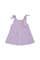 Short dress with logo and floral embroidery on the front. The straps are tied and the skirt features a slight gathering.