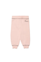 Knit pants with embroidered logo on the front. A soft garment with a minimalist design, featuring contrasting details at the waistband and cuffs.