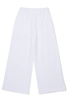 Wide-leg fleece pants. Drawstring waist. Institutional logo in contrasting color on the leg. Front slash pockets. Made of 100% cotton.