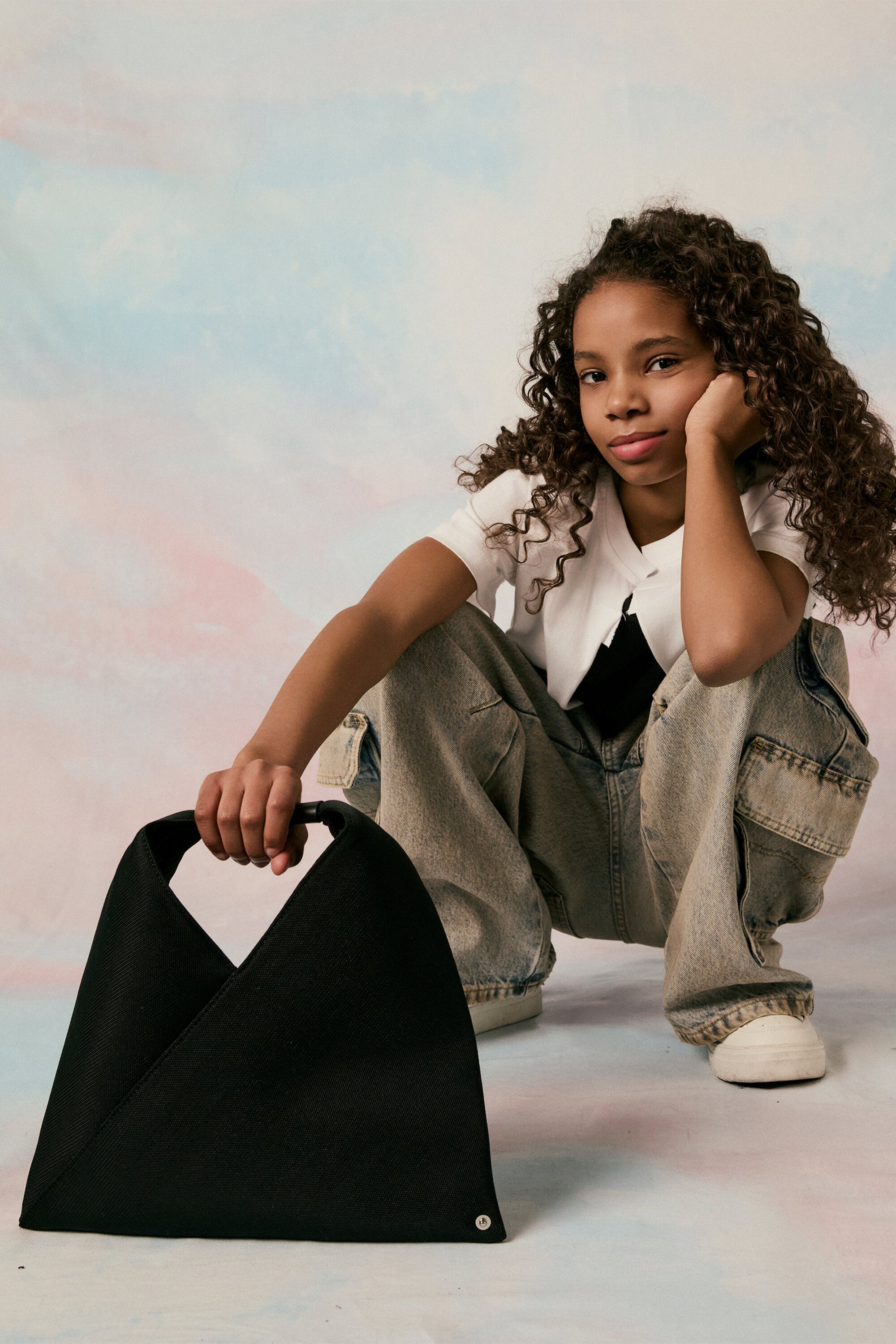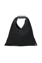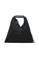 Japanese Bag bag in Mini mesh. Featuring a triangular silhouette and the presence of buttons at the edges that allow the bag to change shape by folding it in different ways, a clear reference to the aesthetic code of the French Maison. The sleeves feature a leather part branded with a numerical logo. It is MM6's most emblematic accessory, taken from the adult collection.