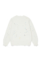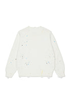 Crew neck pullover in 100% cotton with contrasting painted-effect design.