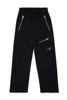 Straight-leg fleece pants with multiple zip pockets and a raw-cut hem at the bottom. A garment that combines comfort and practicality, perfect for kids who want a dynamic, characterful look.