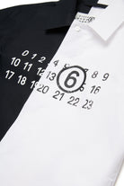 Short-sleeved shirt in poplin with colorblock effect. Re-cut construction that simulates the assembly of two previously unstructured garments. Stamp Numbers graphic on the front. Iconic seam on the back. Made of 100% cotton.