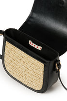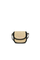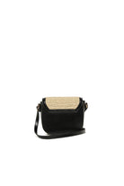 Bag with raffia workmanship and logo. This accessory combines style and functionality.