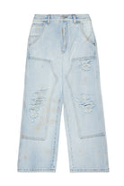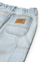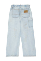 Relaxed jeans in light-wash denim with a lived-in effect, featuring iconic back stitching and distressed details on the legs.