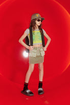 Mini skirt with logo and maxi patch pockets on the front and ribbed texture.