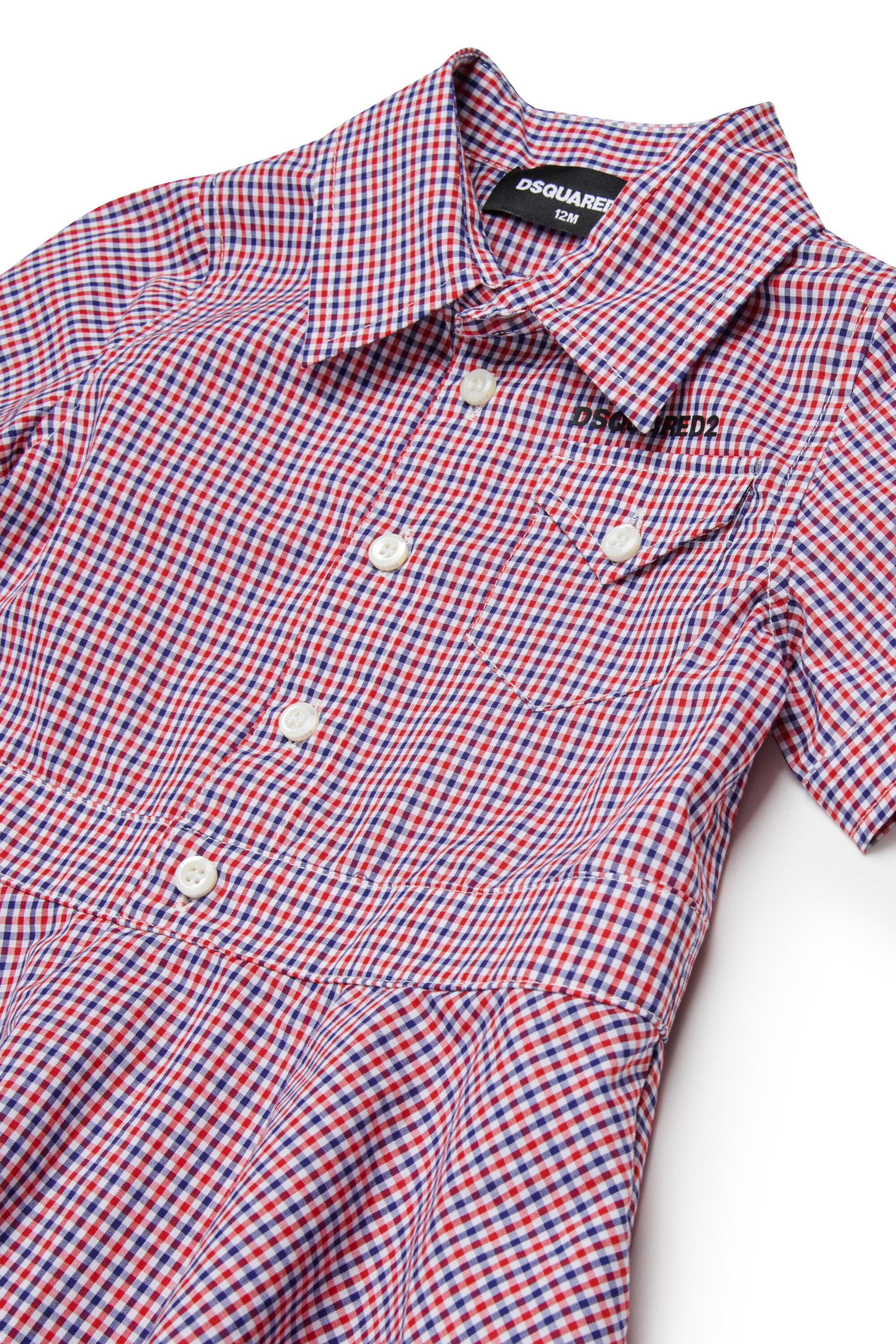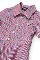Short dress with logo and check print. The flared skirt adds movement and style to the garment.