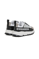 Sneakers with contrasting logo on the side and multi-layer panels with stitched details.