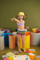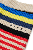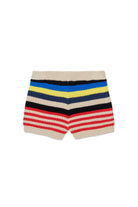 Knit shorts with logo and multicolored striped pattern, featuring a lively and modern design.