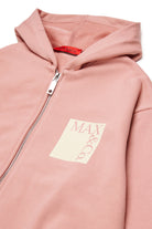 Fully zippered sweatshirt with front logo. The model features a hood and elastic finishes on the cuffs and hem.