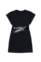 Short dress with logo and glossy-effect belt at the waist, featuring clean lines and short sleeves.