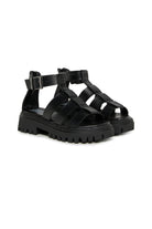 Sandals with logo and side strap. The model features a sculpted sole and side logo detail.