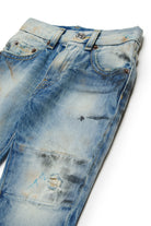 Regular jeans in light blue denim effect with distressing and used wash.